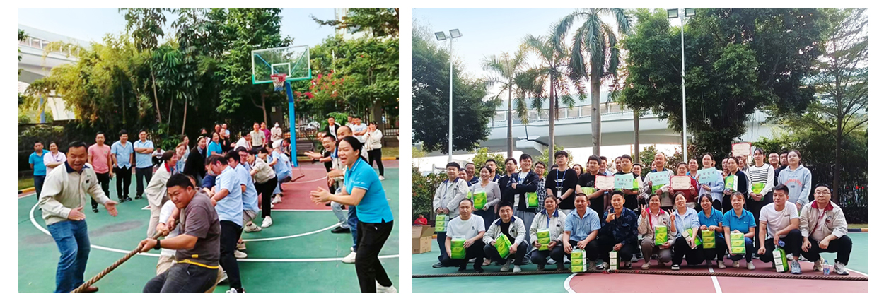 Before the competition, the participating teams arranged their formations and continuously adjusted their positions, emphasizing body posture and exertion methods. The colleagues watching the game seemed to be unable to hold back their excitement,they were  eager for trying. With the referee's whistle, the participating players on both sides exerted their strength, twisting their strength into a rope. With the slogan of "one, two, one, two", they lowered their bodies, stabilized their steps, and worked together in the back-and-forth tug-of-war, striving for the honor of the team. The colleagues who did not participate spontaneously formed a cheer leading team on the side, cheering for the participating players who were giving their all. The atmosphere on the scene was intense and tense, with the sound of whistles, cheers, and applause one after another.